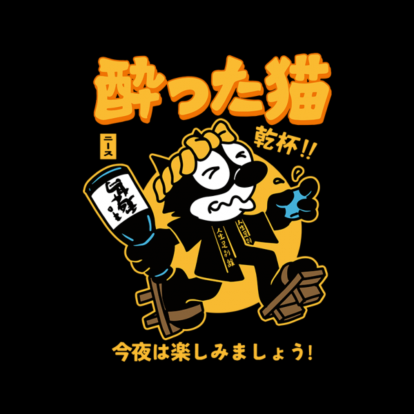 This design “ drunken cat ” is made in Adobe Ilustrator is ready for print.