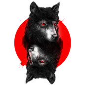 "Duality" is a unique digital illustration of a two-headed wolf with a unique red moon on the background which creates a double illusion effect. This design stands out on any product because of this custom design and its color. File contains a PSD file with 14in x 21in in size.