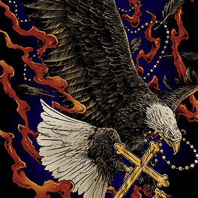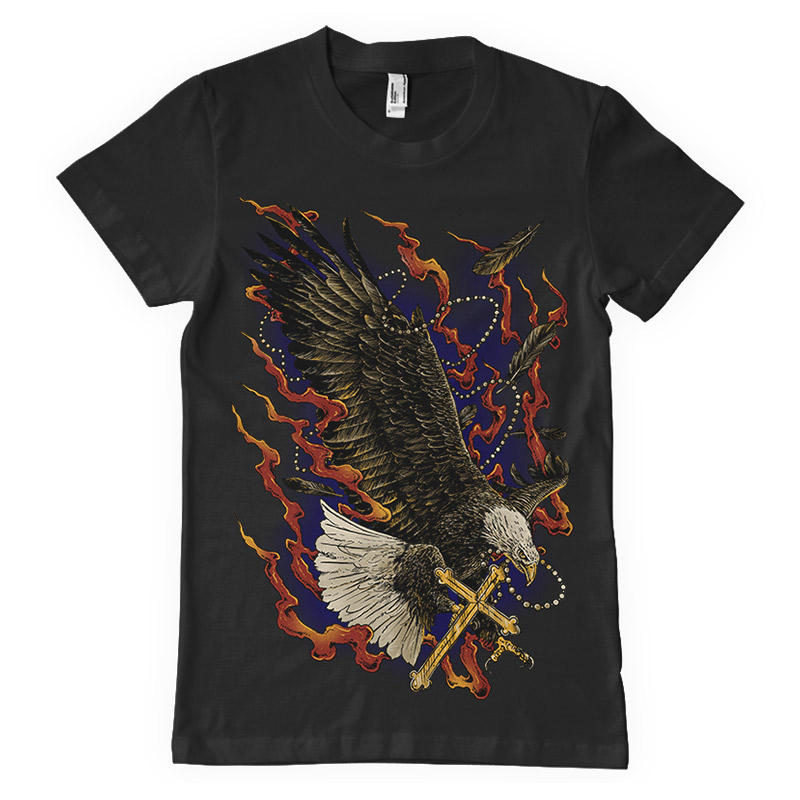 "Eagle Cross" T-shirt Design featuring a eagle and a cross. Design available in PSD format and can be used for digital printing and screen printing. The file will be available for , Adobe Photoshop.