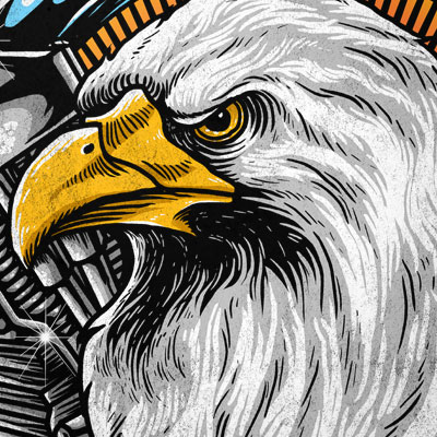Eagle T-shirt design. Digital illustration featuring detailed eagle and wrench. The source file is available in psd format and can be opened with Photoshop program.
