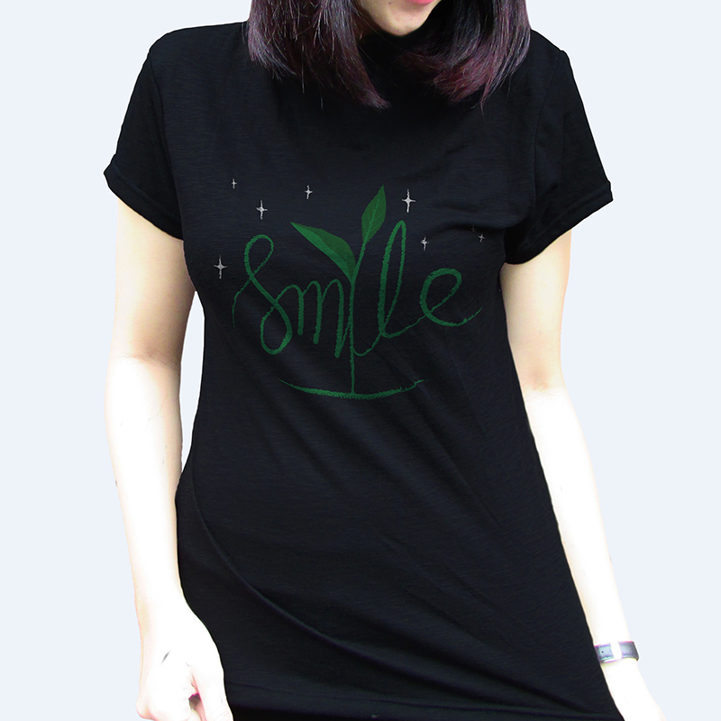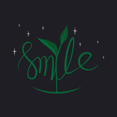 Graphic design illustration with tittle "earth smiles" description is the typography or lettering with grow plant, shine and smiles for the environmental movement, and the issue of the destruction of nature for the sake of survival are better.
