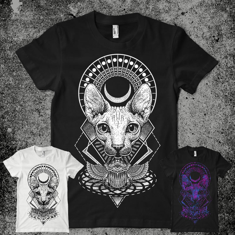 egyptian cat features a stipple design with detailes. Screen print now available for Adobe Photoshop and can be used for digital printing and screenprinting