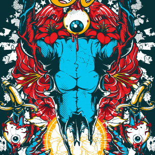 El Chupacabra graphic design template in vector format, featuring detailed creature with one eye now available for Adobe Illustrator, Adobe Photoshop and Corel Draw and can be used for digital printing and screenprinting .