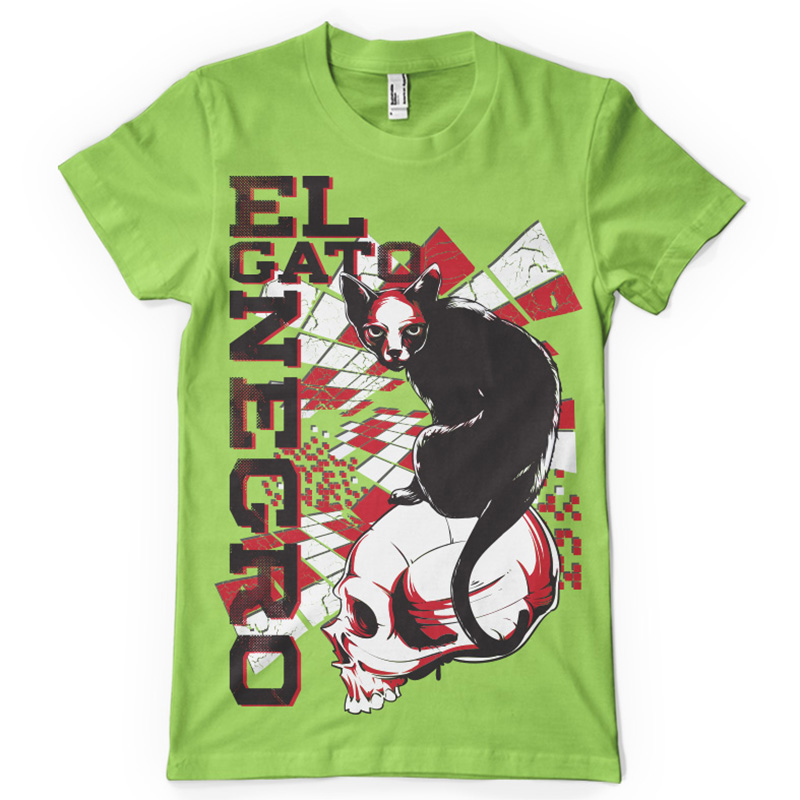 El gato negro t-shirt print features a detailed design available for Adobe Illustrator, Adobe Photoshop and Corel Draw and can be used for digital printing and screenprinting . Ready to print or use in anything you want.
