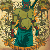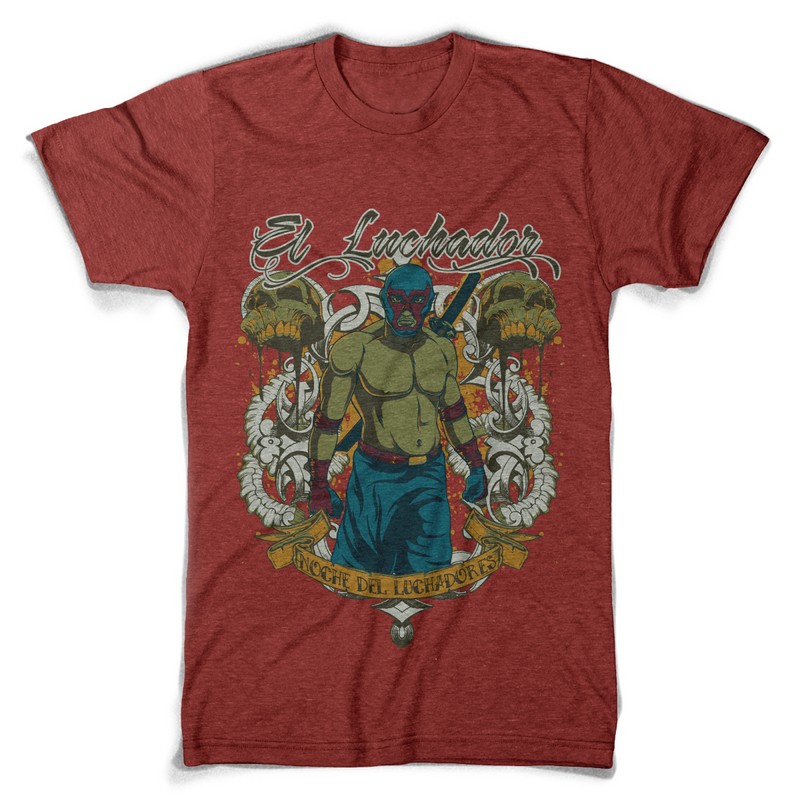 El luchador graphic design template in vector format, featuring detailed fighter now available for Adobe Illustrator, Adobe Photoshop and Corel Draw and can be used for digital printing and screenprinting .