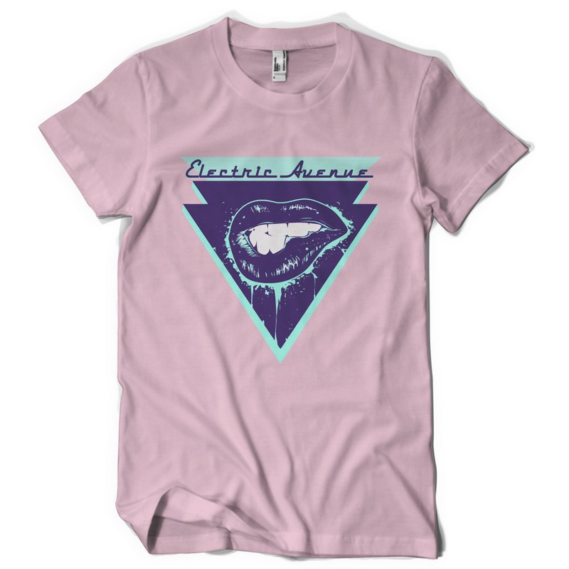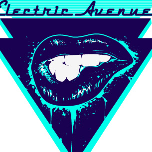 Electric Avenue graphic design template in vector format, featuring detailed sexy lips on arrow now available for Adobe Illustrator, Adobe Photoshop and Corel Draw and can be used for digital printing and screenprinting .