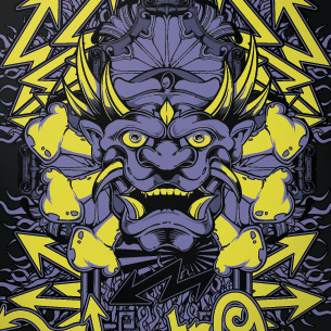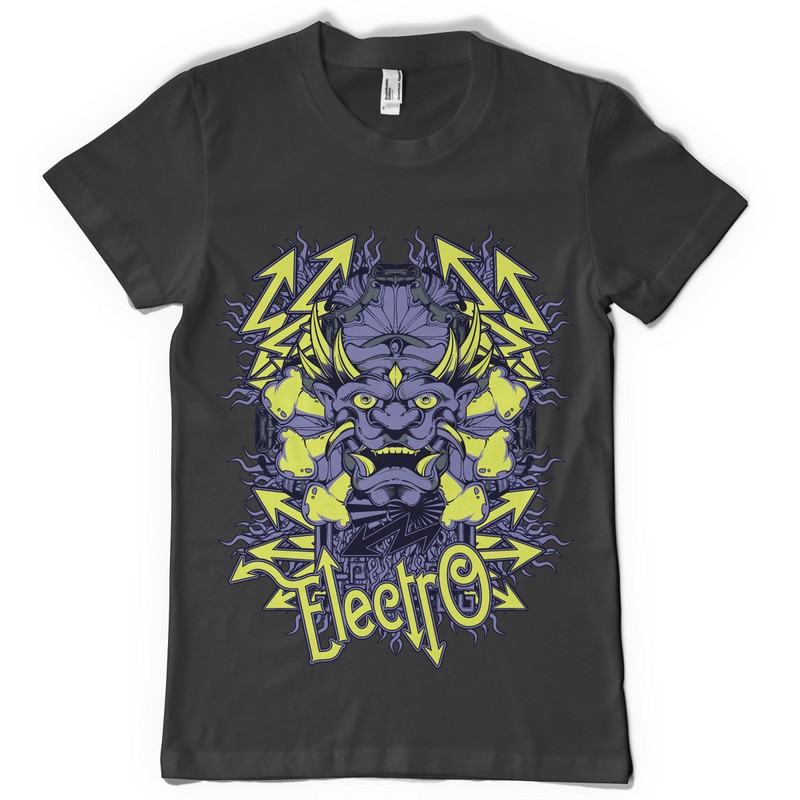 Electro digital design template in vector format, featuring detailed creepy mask now available for Adobe Illustrator, Adobe Photoshop and Corel Draw and can be used for digital printing and screenprinting .