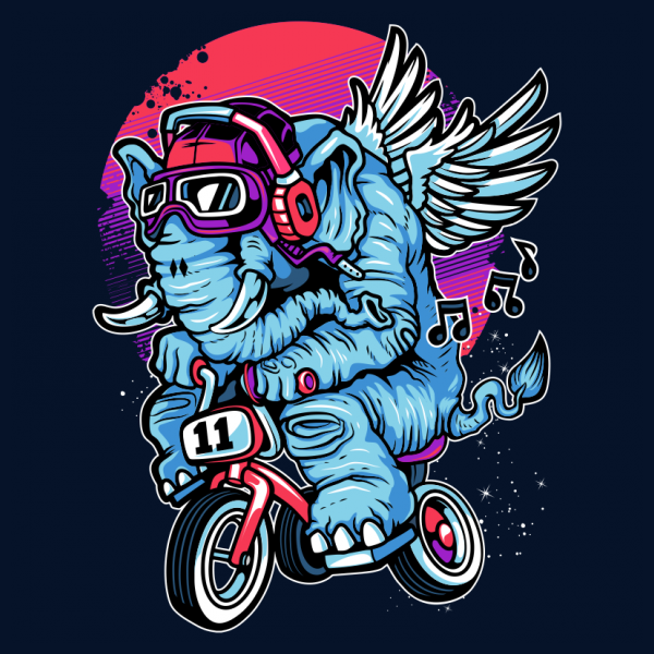 “Elephant Fly ” Cartoon style. such as Ai,EPS,CDR, PDF and PNG Transparent. the design has 6 colors on black T-shirt. print it can be used for digital printing and screen printing