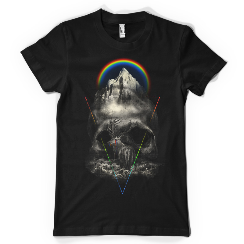 Embrace Life is a unique inspiring illustration of Loving and embracing your life whether its good or bad because its part of it. Elements of a deer as the living, Skull as death, rainbow as the sunshine or goals and mountain as its struggles. File contains a PSD file with layers being separated with a size of 17"x24" with 300 dpi.
