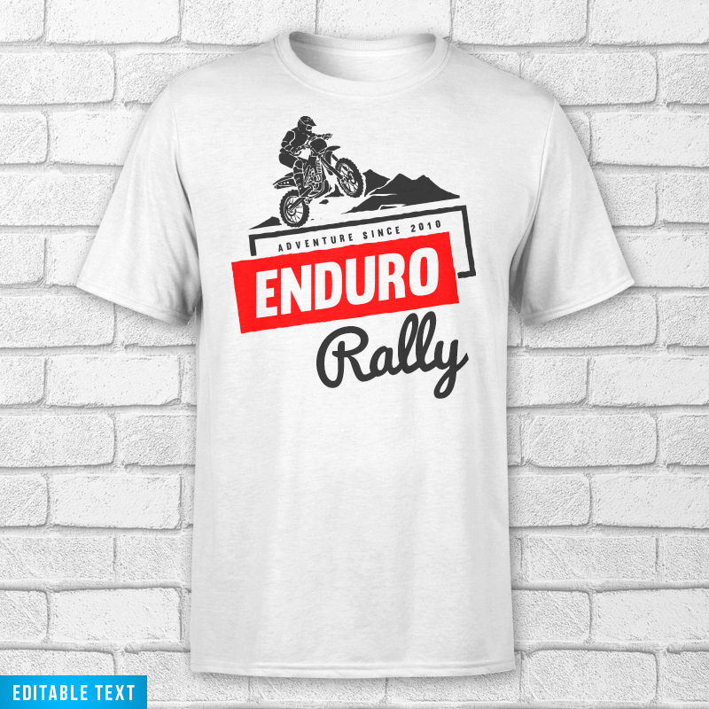 Enduro Rally Motocross is typography based graphic with offroad adventure mountain camp outdoor holiday theme and vintage style illustration. The text is EDITABLE so you can change with your own words.