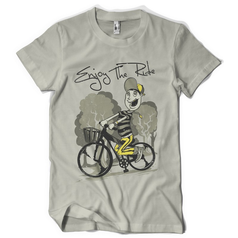Enjoy the Ride printed t-shirt features a detailed screen print of happy boy on the bicycle now available for Adobe Illustrator, Adobe Photoshop and Corel Draw and can be used for digital printing and screenprinting . Ready to print or use in anything you want.
