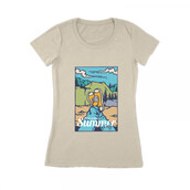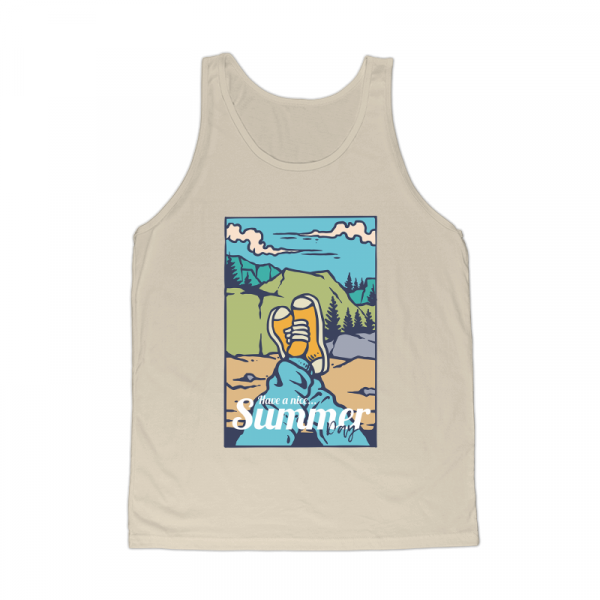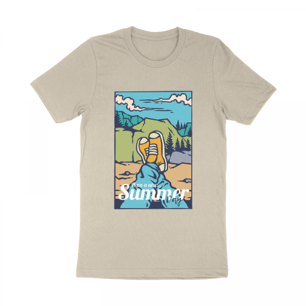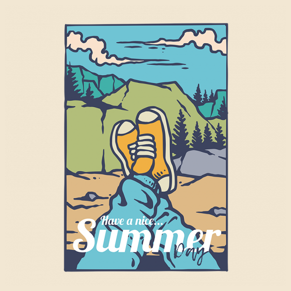 Vector illustration of summer adventure on the mountain with sneakers. Ready to print on t-shirt.