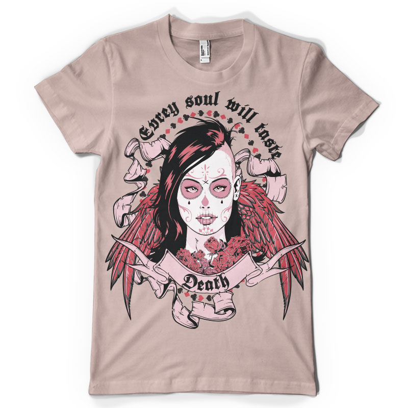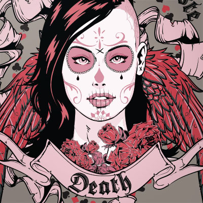 Digital design featuring detailed sugar face girl. This graphic is available in vector format and can be used for digital printing and screenprinting. The file will be available for Adobe Illustrator, Adobe Photoshop.