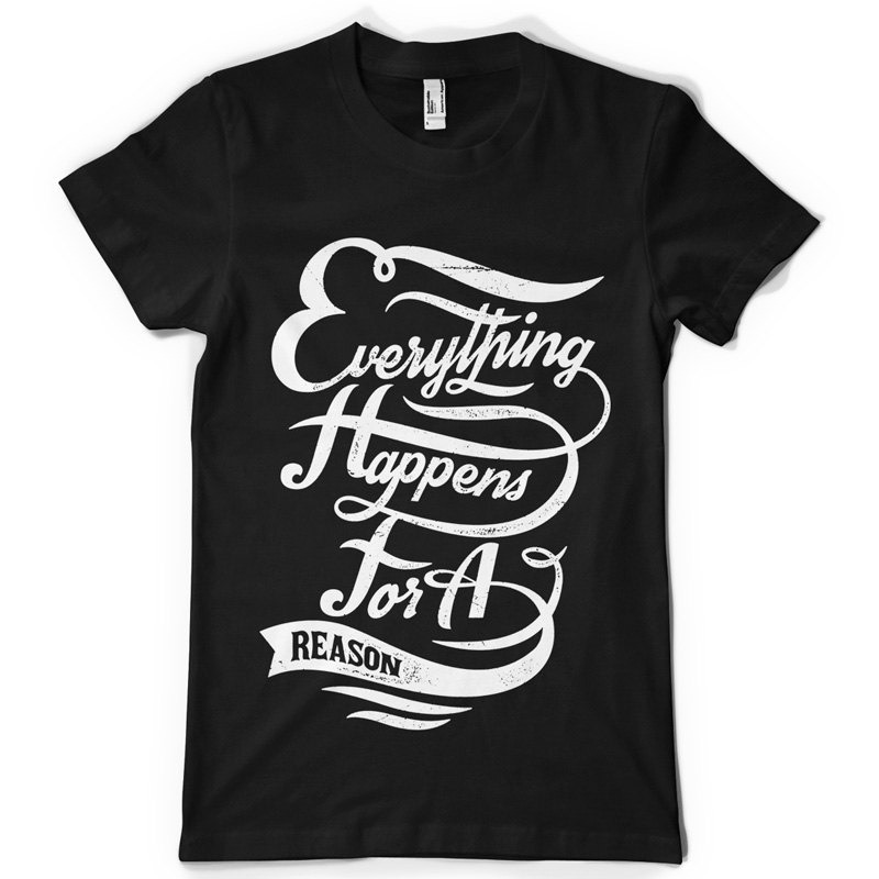 Everything happens for a reason T-shirt design featuring original typography quote. The files available are suitable for Adobe Illustrator, Adobe Photoshop and Corel Draw and can be used for digital printing and screenprinting.