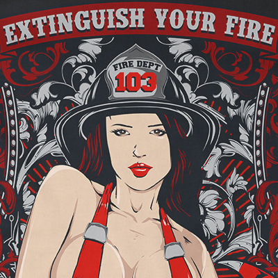 Extinguish your fire design features a firefighter pin up detailed screen print now available for Adobe Illustrator, and Corel Draw and can be used for digital printing and screenprinting.