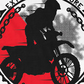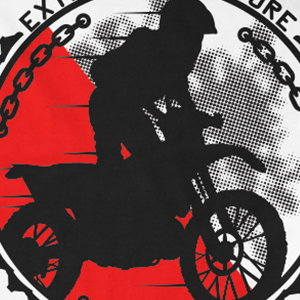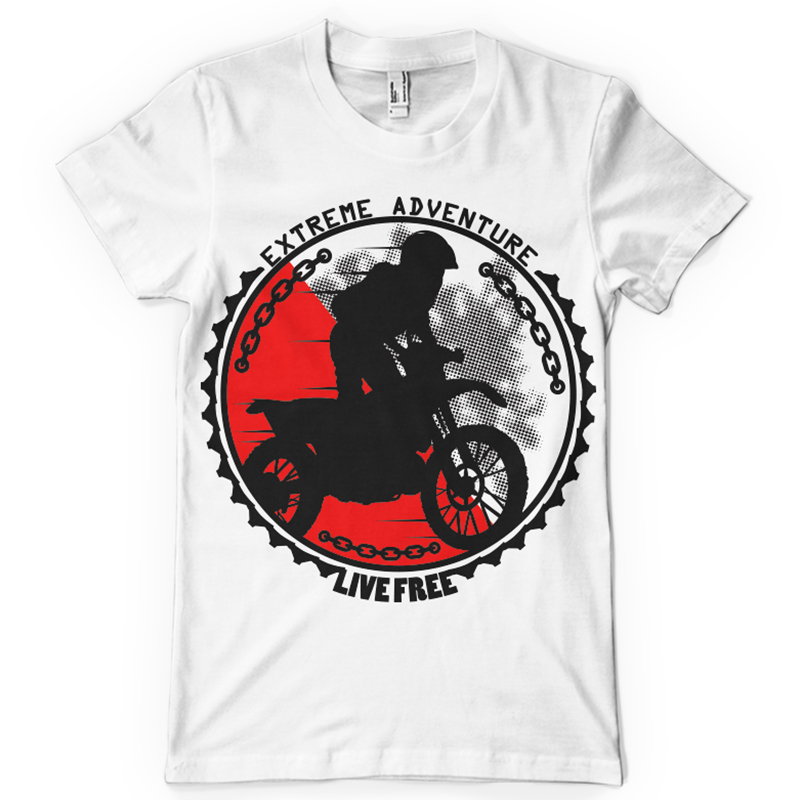 Extreme adventure printed t-shirt features a detailed screen print of extreme biker is now available in EPS format file and can be used for digital printing and screenprinting . Ready to print or use in anything you want.
