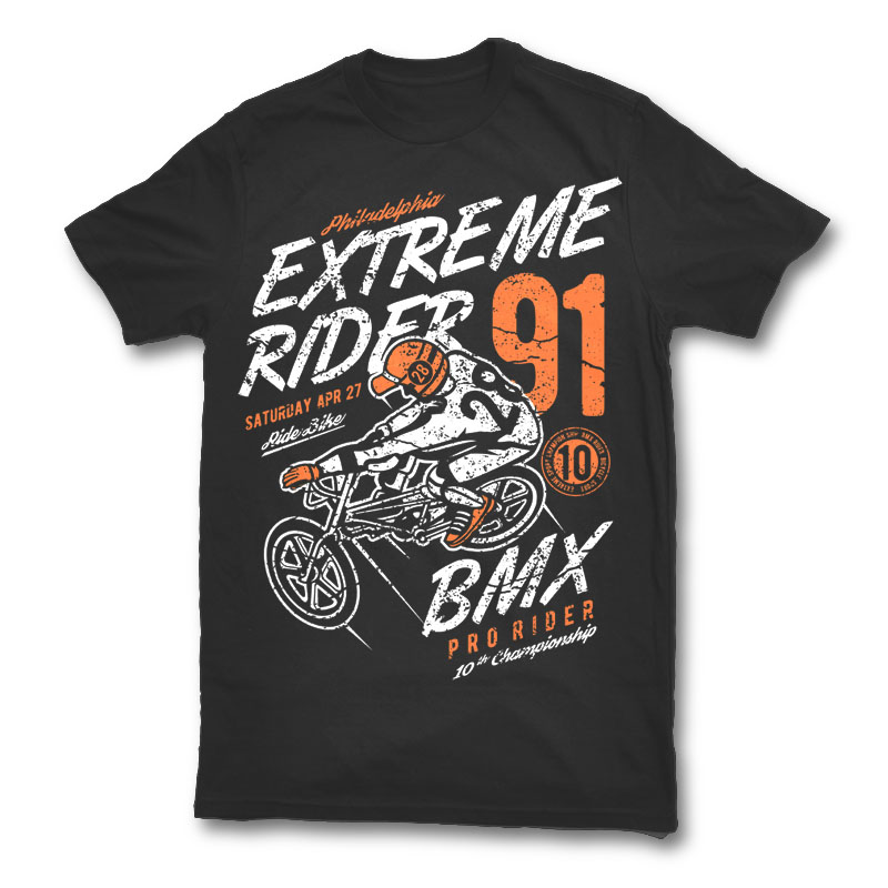 Extreme Rider Tshirt Design Template based on vector files , such as AI and CDR also with PSD separated Layers file, the design has 2 color print, it can be used for digital printing and screen printing.