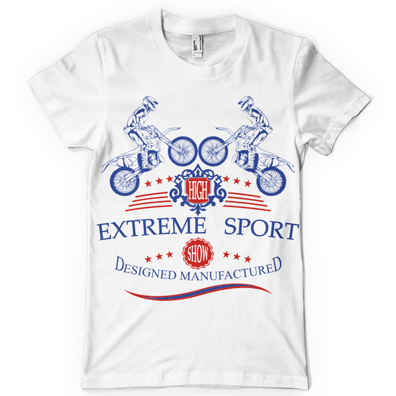 Extreme sport printed t-shirt features a detailed screen print of motorbikers is now available in EPS format file and can be used for digital printing and screenprinting . Ready to print or use in anything you want.