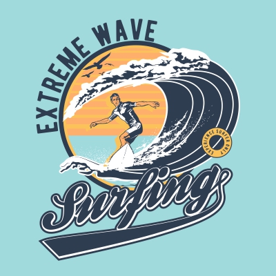 Vector illustration tshirt of surfing design , 5 colors available on Corell Draw X4 file, Adobe illustrator file ,Layered PSD file , EPS , JPG , Transparent Back Ground PNG file , PDF file ,its can be use for Digital printing and screen printing