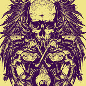 Eye of war graphic design template in vector format, featuring detailed creepy skull and bones now available for Adobe Illustrator, Adobe Photoshop and Corel Draw and can be used for digital printing and screenprinting .