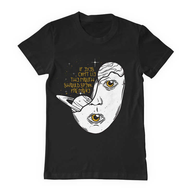"Eyes can't lie" design is available in high quality files, such as Ai,EPS, PDF and PNG. Vector files are organized on separate layers and all elements are editable. Can be used for both digital (DTG) and screenprinting.