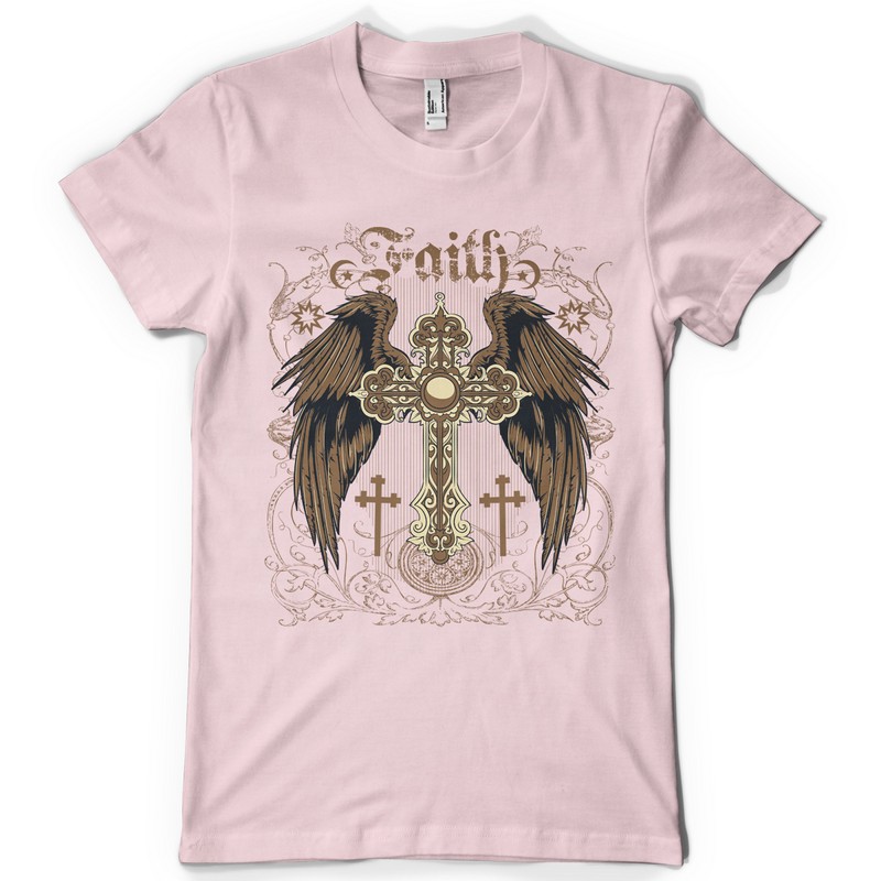 Faith and freedom printed t-shirt features a detailed screen print of winged cross now available in EPS format file and can be used for digital printing and screenprinting . Ready to print or use in anything you want.