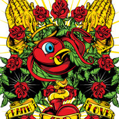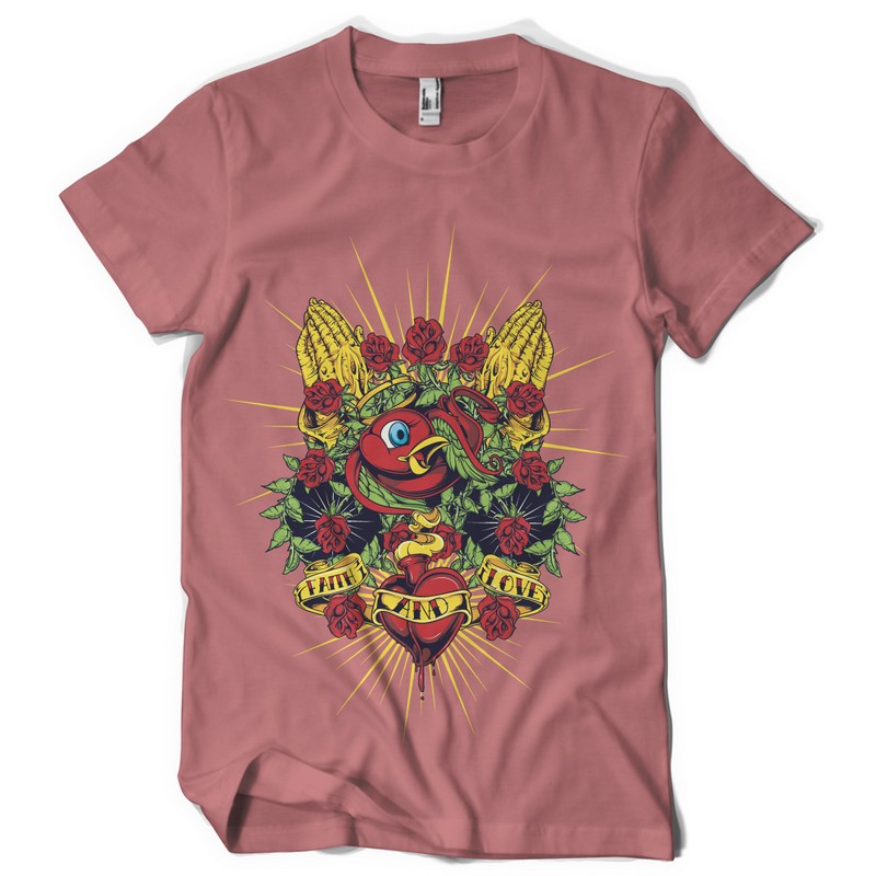 Faith and love digital design template in vector format, featuring detailed beautiful red bird now available for Adobe Illustrator, Adobe Photoshop and Corel Draw and can be used for digital printing and screenprinting .