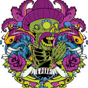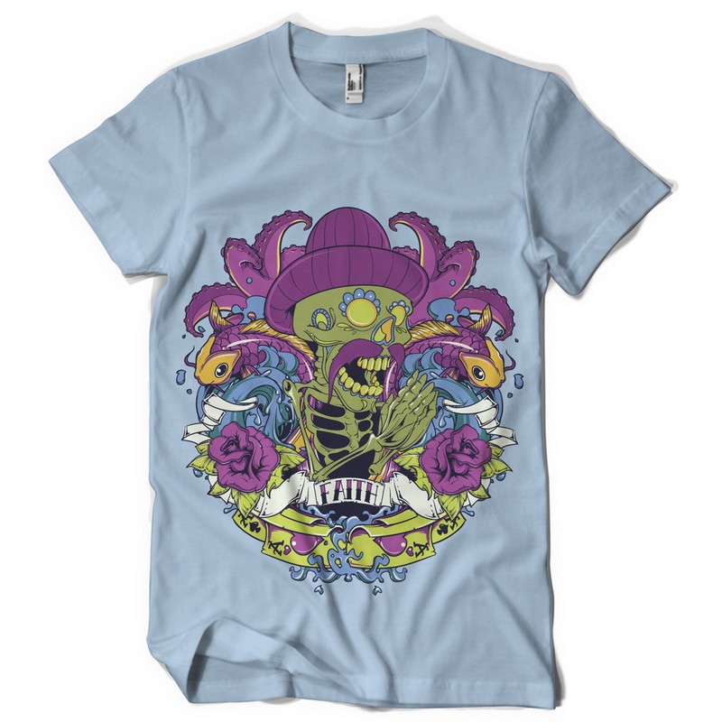 Faith graphic design template in vector format, featuring detailed colourful happy skull now available for Adobe Illustrator, Adobe Photoshop and Corel Draw and can be used for digital printing and screenprinting .