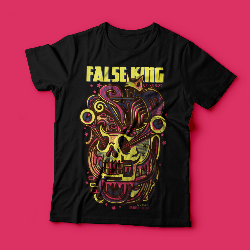 False King its a Character Design that was made in adobe illustrator. Based on vector file , easy to resize and edit. File features AI, EPS, and PNG all in zip, CMYK color mode and 4 color. Can be used for digital printing and screen printing.