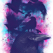 "Family of Ravens" is a unique illustration of ravens with different colorful neon colors of purple, teal and pink. This design is eye-catching because of its colors and its unique abstract painting style. File contains a PSD file with 17 x 24 in 300 dpi.