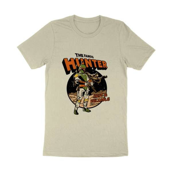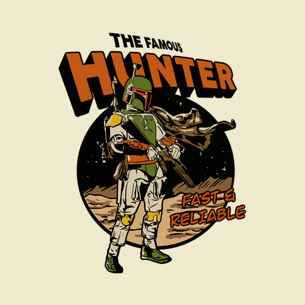 This design “ famous hunter ” is made in Adobe Ilustrator is ready for print.