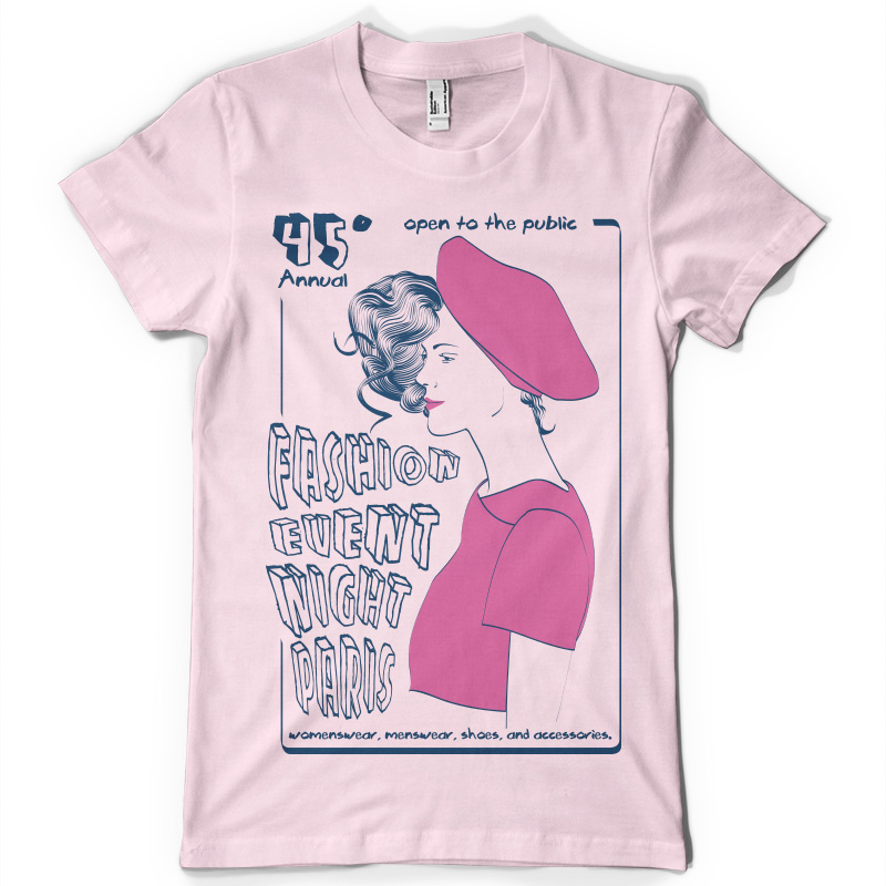 "Fashion poster" vector illustration made by Danilo De Donno. T-shirt template is available as an EPS file, that can be used with Adobe Illustrator, Corel Draw. For Adobe Photoshop, just save the file in PSD format and then open it in the Photoshop program.