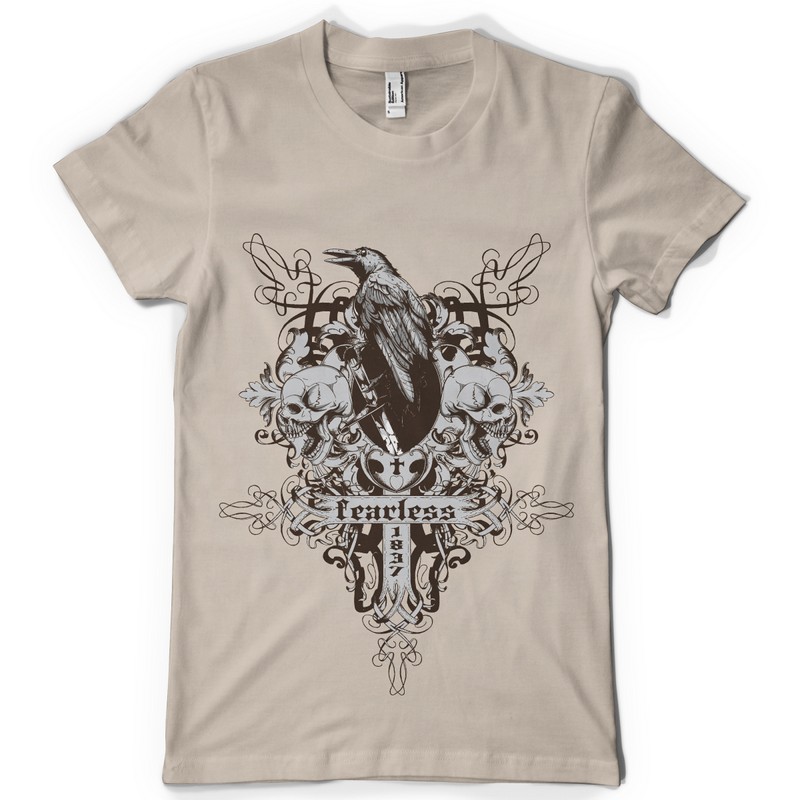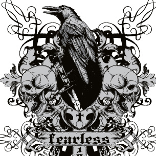 Fearless digital design template in vector format, featuring detailed skulls and raven now available for Adobe Illustrator, Adobe Photoshop and Corel Draw and can be used for digital printing and screenprinting .