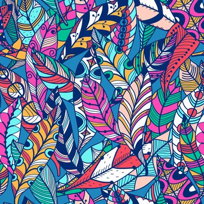 Vector seamless pattern with colored abstract feathers.This image is a vector illustration and can be scaled to any size without loss of resolution. This image will download as a .eps file.