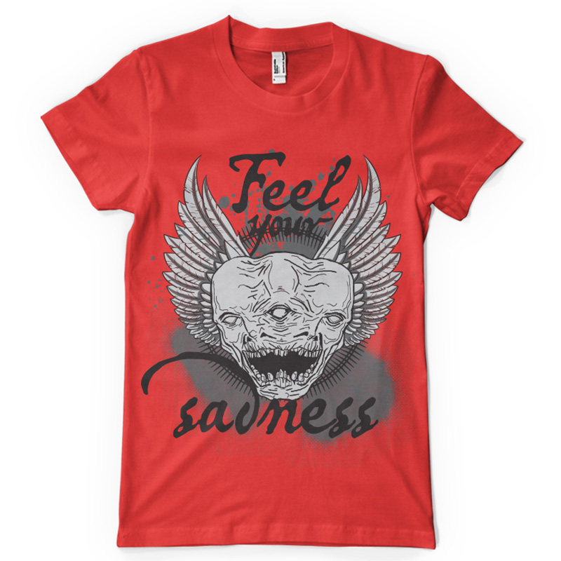 Feel your sadness t-shirt print features a detailed design available for Adobe Illustrator, Adobe Photoshop and Corel Draw and can be used for digital printing and screenprinting . Ready to print or use in anything you want.