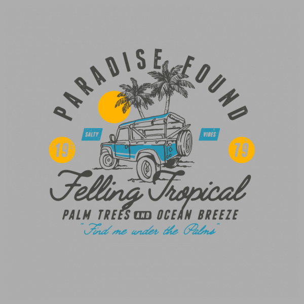 This design “Feeling Tropical” is made in Adobe Ilustrator is ready for print.