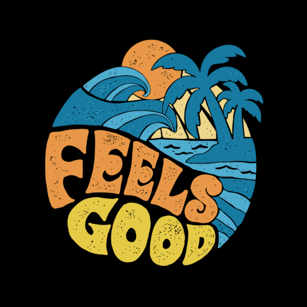 This design “ feels good ” is made in Adobe Ilustrator is ready for print.