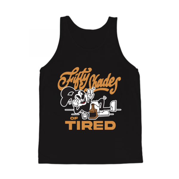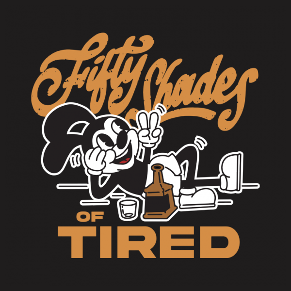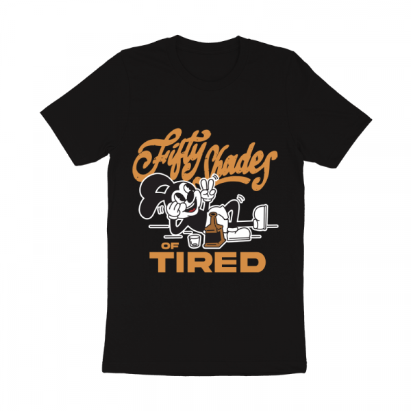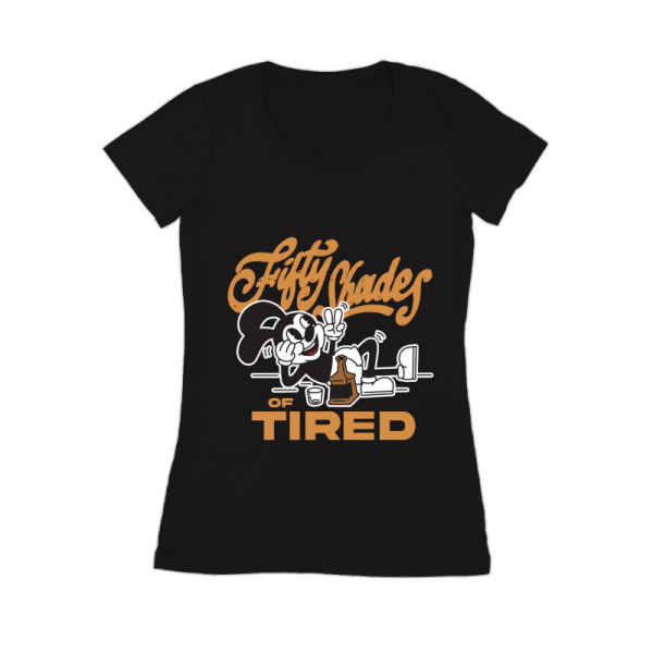 This design “ fifty shades of tired ” is made in Adobe Ilustrator is ready for print.