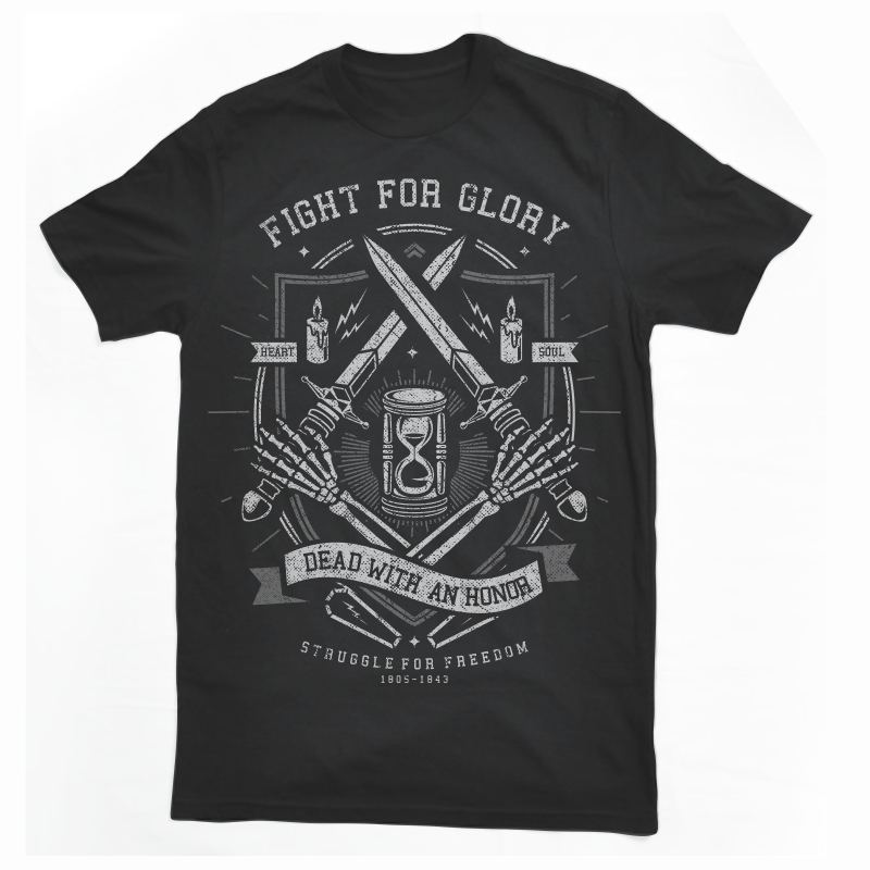 Fight For Glory T-shirt design template with CorelDraw or Adobe Illustrator 2 colour print, CDR,AI,PSD separated Layers. Can be used for digital printing and screen printing.