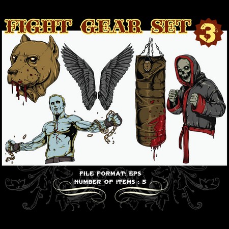 We introduce you to high-quality vector art, featuring burning gloves, champion belts, skull boxers, zombie fighters, punching bags, missing teeth, mouth pieces, even baseball bats and knuckle brass, all you can relate to fighting in a nutshell.