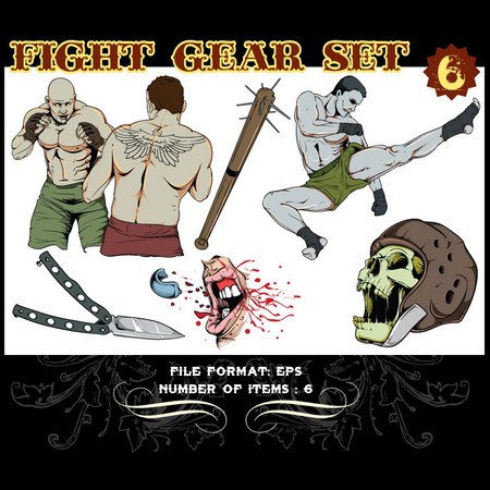 We introduce you to high-quality vector art, featuring burning gloves, champion belts, skull boxers, zombie fighters, punching bags, missing teeth, mouth pieces, even baseball bats and knuckle brass, all you can relate to fighting in a nutshell.