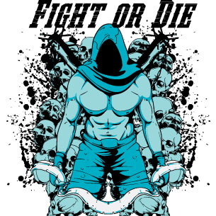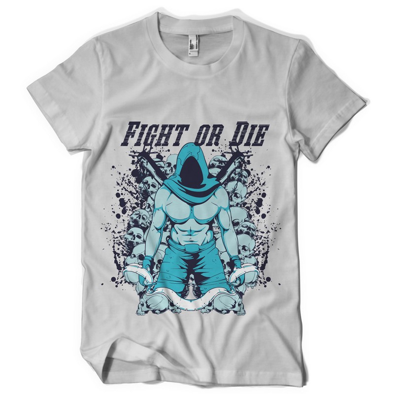 Fight or die design template in vector format, featuring detailed assassin man from the game now available for Adobe Illustrator, Adobe Photoshop and Corel Draw and can be used for digital printing and screenprinting .