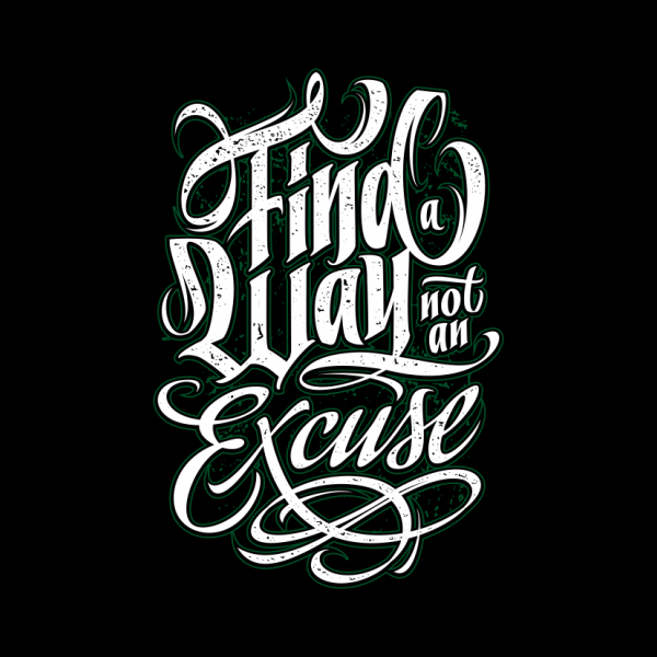"Find a Way, Not an Excuse" based on vector design. This artwork is in AI, EPS, PNG and PDF files, ready for print. Separate color based on layer, it can be used for digital printing and screen printing, and can also be used for stickers, logos, poster, wallpapers.thanks and enjoy !!