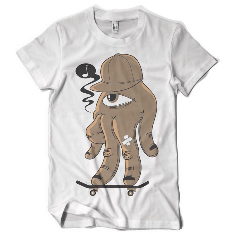 Finger Skater printed t-shirt features a detailed screen print of hand creature on the skateboard now available for Adobe Illustrator, Adobe Photoshop and Corel Draw and can be used for digital printing and screenprinting . Ready to print or use in anything you want.