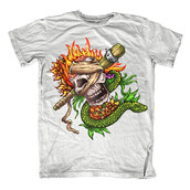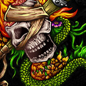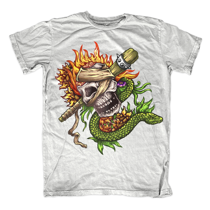 Illustration of skull mummy zombie with snake and flames and tattoo design style. Ready to print on t-shirt.