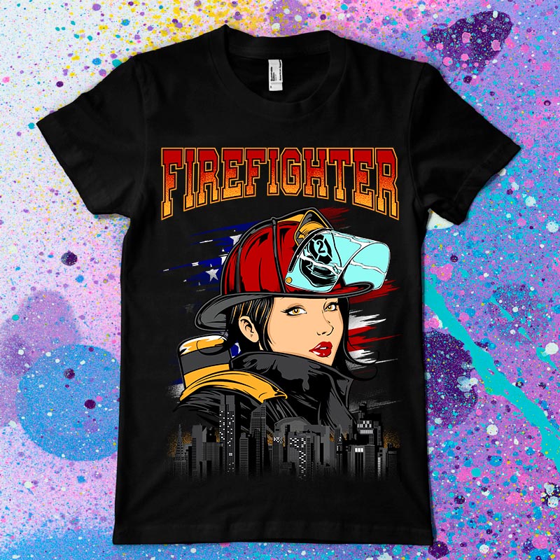 Firefighter Girl design features a female firefighter design with detailes. Screen print now available for Adobe Illustrator, Adobe Photoshop and can be used for digital printing and screenprinting