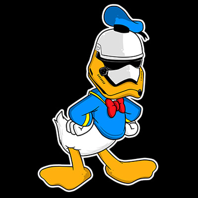 Firstorder Donald duck Cartoon character style T-shirt design template , The file is PSD separated Layers. Can be used for digital printing and screen printing.