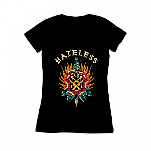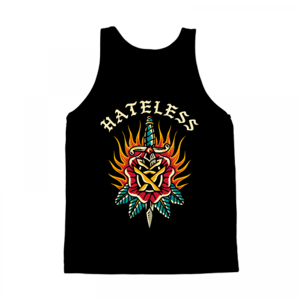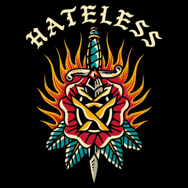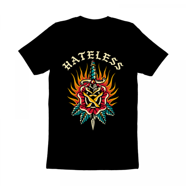Traditional Flaming Rose Dagger Tattoo for clothing brand, band merch or poster
