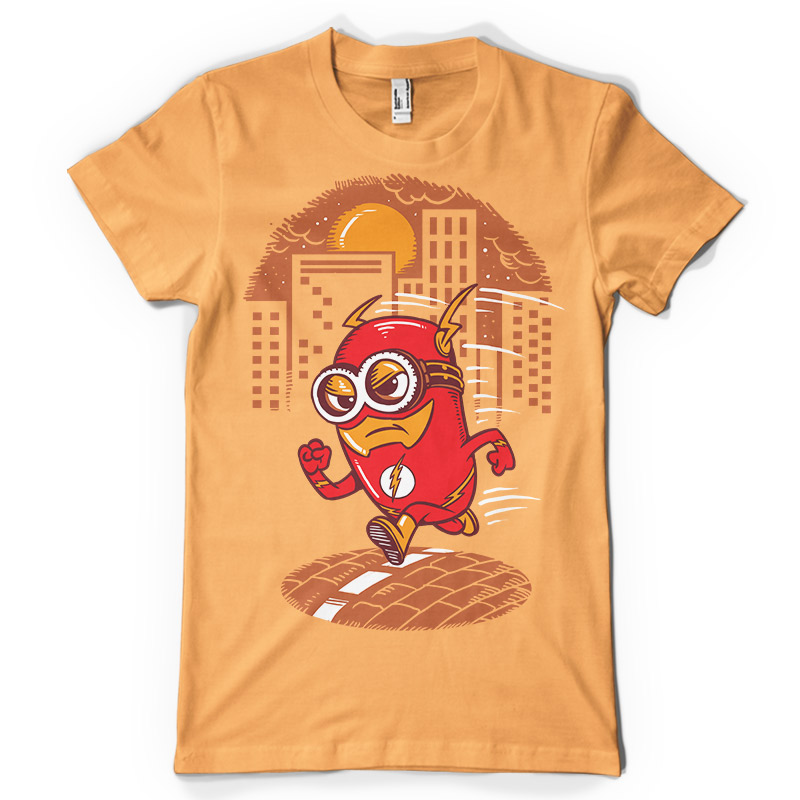 "Flash Minion" T-shirt Design featuring a funny interpretation of minion character as Flash Hero. Design available in PSD format and can be used for digital printing and screenprinting. The file will be available for Adobe Photoshop