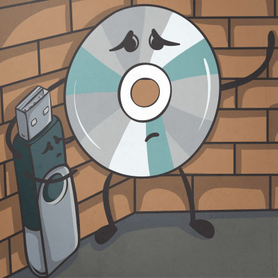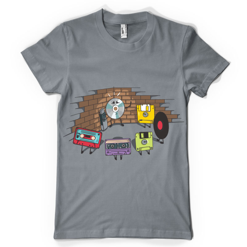 Floppy threat is an illustration made in Adobe Illustrator,featuring a CD and an USB stick being threatened by some old floppy disks,cassettes and vynil for stealing the place of them.It can be used on digital printing,screen printing and T-shirt design and it is available in PSD,EPS and CDR format file.